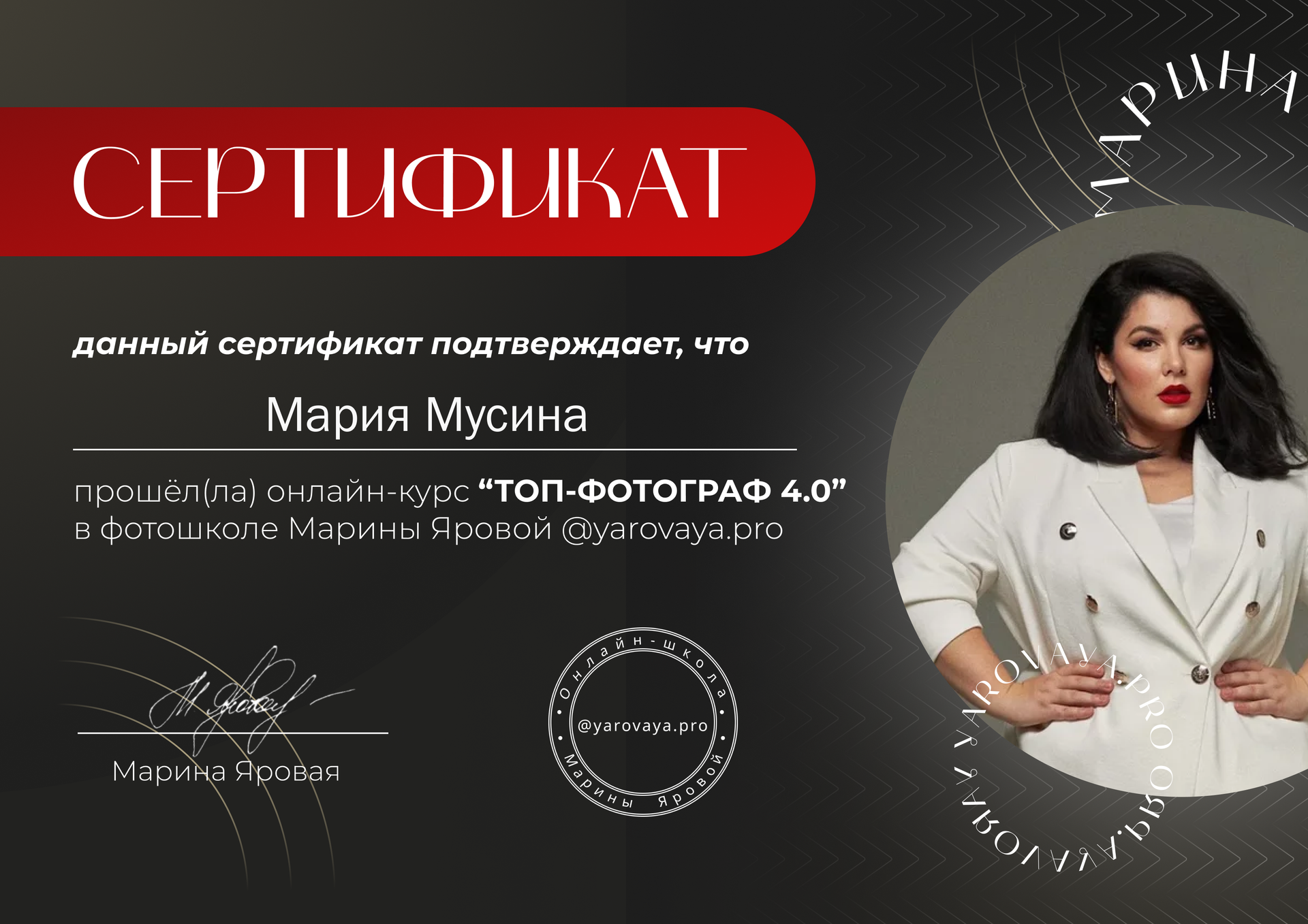- Наставник фотографов в самой топовой академии по фотобизнесу Марины Яровой